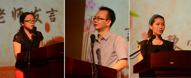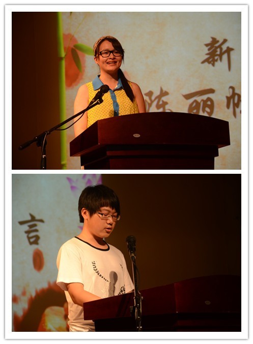 开学典礼进入到尾声,由来自2013级音乐表演班的陈丽帆同学和视觉传达设计的王寒同学作为新生代表上台发言,他们分别在回顾自己过去的学习经历的同时,表达了对老员工活的期待和憧憬,与更展示了新同学们为未来努力奋斗的决心和信心。
