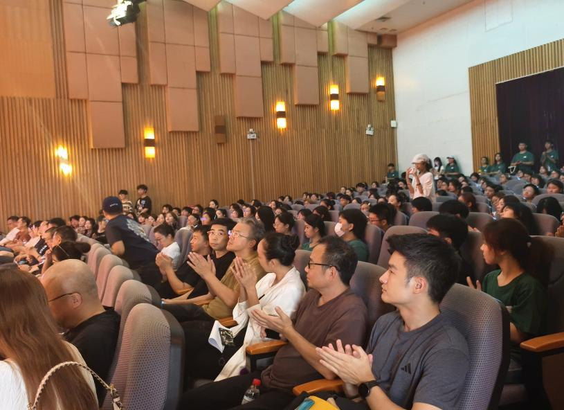 在热烈的掌声中,王凯宏经理代表学院致欢迎辞。她向全体2025级新生的到来表示最诚挚的祝贺和最热烈的欢迎,并介绍了学院国际化合作交流的鲜明特色。王经理深情寄语新生,希望他们扎根传统根脉,拥抱变革浪潮;保持敏锐感知,培养批判思维,勇于试错,在合作中共赢。