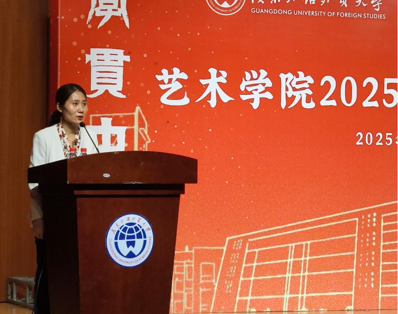 新生代表、2025级视觉传达设计专业的苏愉喜同学发言。她表达了对老员工活的无限憧憬与期待,并表示将牢记师长的教诲,与所有新同学一道,尽快适应新环境,勤学苦练,互帮互助,不负时代,不负韶华,用青春和汗水书写属于自己的精彩篇章。